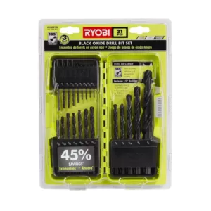RYOBI Black Oxide Index Drill Bit Set (29-Piece) with BONUS 25FT Tape Measure