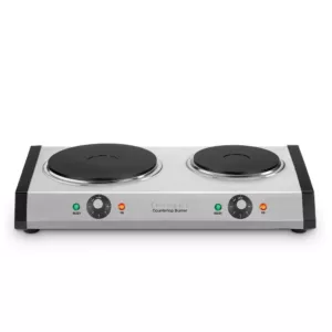 MegaChef Portable 2-Burner 7.5 in. Sleek Steel Hot Plate with Temperature Control