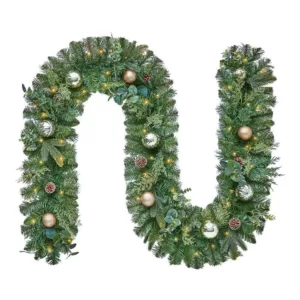 Village Lighting Company 9 ft. Pre-Lit LED Winter Frost Garland