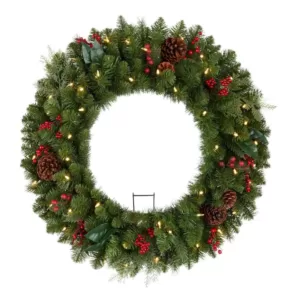 Fraser Hill Farm 24 in. Artificial Christmas Wreath with Garland, Pinecones, Bows, and Berries