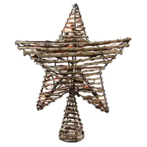Northlight 11.5 in. Natural Brown Rattan Star Christmas Tree Topper – Clear Lights