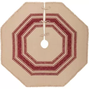 Glitzhome 42 in. D Felt Christmas Tree Skirt in Traditional Red and White