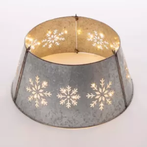 Glitzhome 21.65 in. D Snowflake Diecut Metal Tree Collar with Light String (KD)
