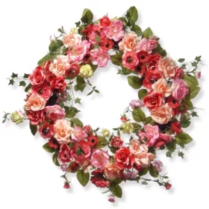 Nearly Natural 21 in. Cedar with Blue Berries Artificial Wreath