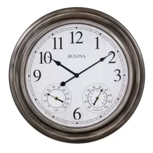 Bulova Indoor/Outdoor Molded Silver Tone Case 20 in. Round Wall Clock