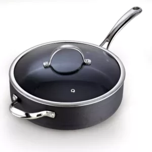 Cooks Standard 5 qt. Hard-Anodized Aluminum Nonstick Deep Saute Pan in Black with Glass Lid