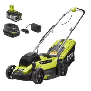 Sun Joe 14 in. 28-Volt Cordless Walk-Behind Push Mower Kit with 5.0 Ah Battery + Charger, Red