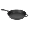 Take your cooking expertise to new levels with this 14 in. Pre-seasoned Cast Iron Skillet. Perfect for eggs, bacon, cornbread or a rich, thick roux, it works to transfer and retain heat evenly for mouthwatering results. It’s perfect for hunting, fishing, camping and backyard entertaining. Quality constructed for a long-lasting use, it features pour spouts and a helper handle. It can be used on any type of cooktop.
