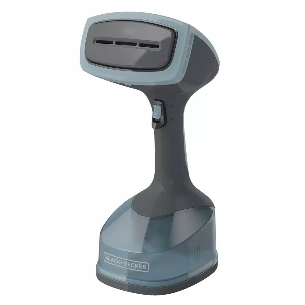 Erasing wrinkles from clothing and freshening up fabrics is a breeze with the BLACK+DECKER Advanced Handheld Steamer. With 1400-Watts of power and a preheat time of less than a minute, this steamer delivers quick and effective wrinkle-fighting performance, producing 45% more steam than the Conair GS23 Series . The locking trigger lets you apply steam continuously or in small bursts, plus three attachments are included for removing lint, and steaming upholstery and delicate fabrics. So handy to use, its perfect for deodorizing and refreshing bedding, drapes and plush toys, and steam cleaning heat and moisture tolerant hard surfaces such as high chair trays and kids play surfaces as a chemical free alternative. The BLACK+DECKER Advanced Handheld Steamer puts the power of steam into a lightweight appliance for quick, everyday use, keeping your fabrics wrinkle-free and household steam fresh. 45% more steam than the Conair GS23 Series based on 3rd party testing, July 2016.