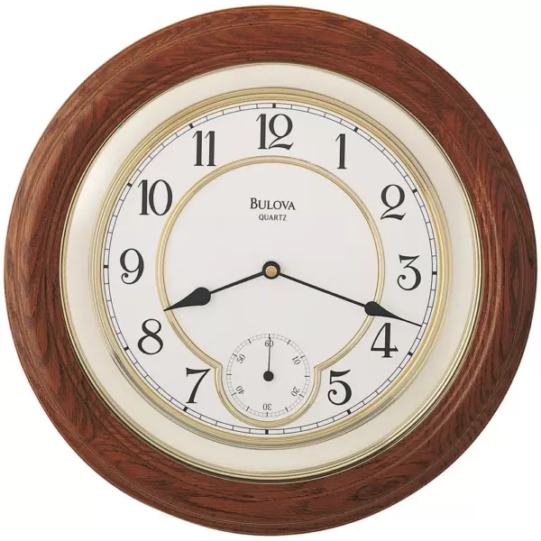 A 14 in. round wall clock with a solid oak case to bring distinction to any room. Deco wall styling to fit any decor. The floating dial is unique to this clock that has a distinctive flair.