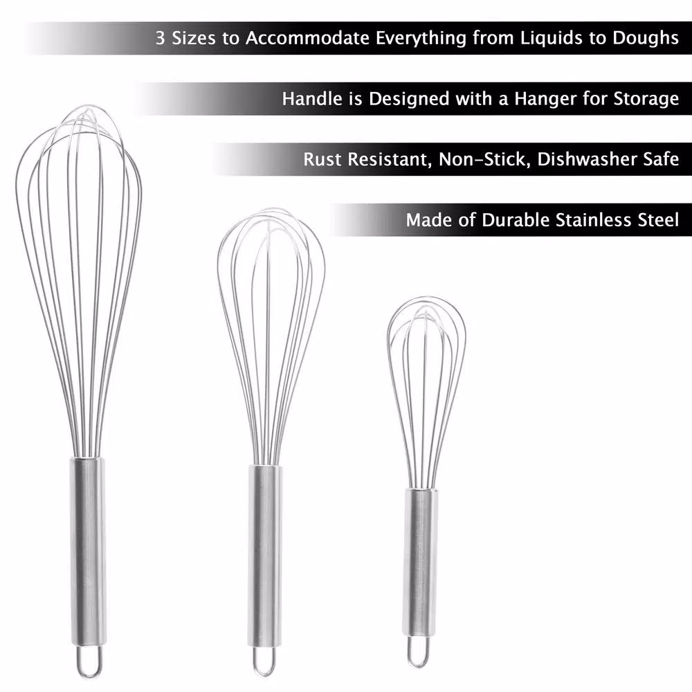 This Stainless Steel Wire Whisk (Set of 3) by Classic Cuisine is perfect whether mixing, whipping, blending, or stirring. The lightweight handle and nonstick material of these wire whisks make it easy to cook all your favorites, including warm homemade bread dough, flavorful chocolate cake, fluffy scrambled eggs, and more. Simplify your life with the luxury of dishwasher safe utensils- resulting in less time for cleaning, and more time to enjoy your culinary creations.