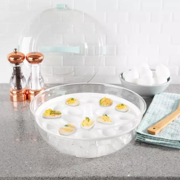 The 4-in-1 Cold Appetizer Chilled Serving Tray by Classic Cuisine is a convenient and easy way to serve chilled foods at your next party. With a cooling bowl for ice or salad, a tray that holds 18 deviled egg halves, and a platter with 3 divided compartments you can easily keep fruits, veggies, dips, or any other chilled appetizers at the perfect temperature during your event. This 4-in-1 serving-ware also comes with a secure lid, making the dish easily portable and travel-friendly; its perfect for a picnic or potluck. The shatter-resistant and BPA free dish is also great for both indoor or outdoor use, and makes a stylish, practical serving container for your next barbecue, baby shower, or birthday party.