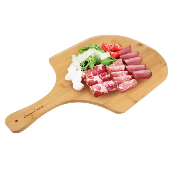 Add a touch of authentic Italian flair to family pizza night with the Bamboo Pizza Peel by Classic Cuisine. This wooden paddle makes it easy to transfer pizza, bread and other food to and from either your oven or grill. The wooden construction also gives the paddle strength, so it won’t flex and spill food. Not only is this great for cooking and serving pizza, it also is ideal as a cutting board for cheese, fruits, and charcuteries.
