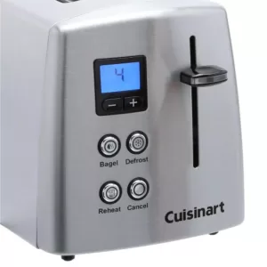 The classic toaster gets a modern update with the Compact Plastic Toaster by Cuisinart. It saves space whether placed sideways or facing forward, to fit any kitchen counter. Whether making thick bagel halves or thin sliced breads, the wide slots, high-lift carriage and custom controls ensure even, precise and convenient toasting every time.