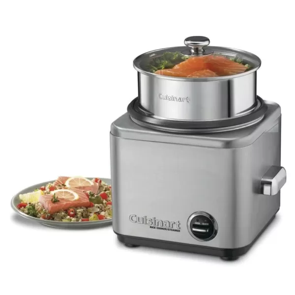 Now making the perfect rice dish is easy with the new brushed stainless Cuisinart CRC-800 8-Cup Rice Cooker. Its steam vent helps to prevent splattering, while its chrome-plated handles stay cool to the touch. Use the Built-in tray to steam other foods while the rice is cooking; when you’re done, the non-stick coating and durable construction make cleanup a breeze.