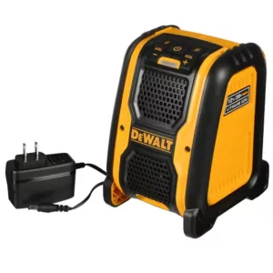 The DCR006 Jobsite Bluetooth Speaker is ideal for users who are very mobile and need a lightweight, portable and convenient music solution. The AC/DC powered Jobsite Speaker gives users the option to listen to music from their mobile phone or another Bluetooth-compatible device wirelessly, while their mobile device is kept safely with them and accessible at all times. The Jobsite Speaker includes an aux port to play music from their non Bluetooth-compatible devices as well as a USB Power Port for convenient device charging while powered by DEWALT battery or AC power.