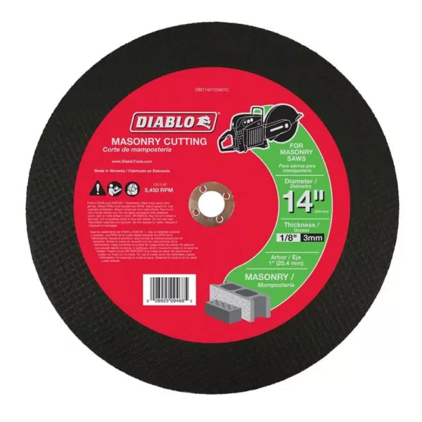 Diablo premium high speed masonry cut-off discs provide superior performance and increased productivity. Featuring a premium silicon carbide blend, these discs cut through material faster than other cut-off discs and offer an extra-long cutting life. Fully reinforced for use in hand-held cut-off work.