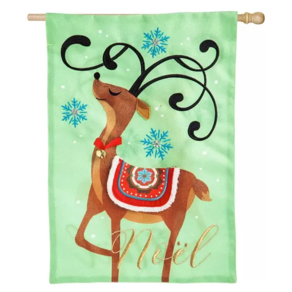 This is a 44 in. x 28 in. double-sided indoor / outdoor flag with Christmas design. Fits standard size flag pole, not included. Packaged in poly bag with header card. Flag is weather and fade resistant and makes a great gift for a loved one.