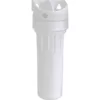 The GE Heavy-Duty Household Water Filtration System reduces sand, sediment and rust from your main water supply. It is a high-flow system with a 40 psi – 100 psi feed water-pressure tolerance. A clear sump allows easy viewing of the filter to monitor its condition and a canister wrench is included for easy filter changes. A bypass valve helps increase filter life when filtered water is not needed. This quick-connect system comes with hardware and an installation kit. It is NSF certified for safety and reliability.