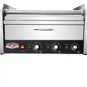 The Great Northern Popcorn Company has created a masterpiece with their Commercial Dawg in. Professional Hot Dog Grilling Machine. Get ready to make plump, juicy, rotisserie style ballpark hot dogs in your home or business. You will be able to grill your own ball park franks, Dodger Dogs, Philly Franks, or any other of your favorite stadium dogs. For you Green Bay Packer fans, these do wonders on Milwaukee’s finest sausages. What’s even better, is that Great Northern has plumped up their best-selling hot dog rollers and added a bun warming tray. It slides smoothly out from under the rollers and warms your buns, just like the ball park. With the GNP your customers will not have to wait in long lines for a stale dog since GNP’s exclusive slow roller system is guaranteed to keep each dog fresh, plump, and juicy until served. It is perfect for birthday parties, and is a hit at holiday cookouts, Super bowl parties, and just celebrating with family and friends.