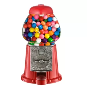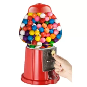 The Great Northern Gumball Machine and Bank brings back memories of an old fashion candy shop with the penny gumball machine. The base is constructed of a heavy-duty cast metal base and the globe is made of real glass-not cheap plastic. The heavy duty construction provides added stability and feel and prevents the machine from tipping over like some of the inferior units sold in the marketplace. Great Northern has incorporated an innovative dispensing mechanism which is fully adjustable so you can vary the amount of candy/gum that is dispensed when you turn the handle. In addition, there is a unique anti-spill cover which will keep your candy/gum in the tray and not on the floor. The machine also operates as a bank and has proven to be an effective tool for teaching kids how to save money. Features / Specifications: Real glass gumball machine globe – not cheap plastic, Premium Construction. Cast metal gumball machine base, lid, and coin mechanism, Accepts any coins (quarters, dimes, nickels, pennies), Includes instructions for “free spin” to work without coins, Works as a gumball bank – retrieve coins when full, Anti-spill gumball dispenser with door cover, Dispenses small gumballs (0.62 in. or smaller), candy, or nuts, Gumball capacity: 2 lbs. of 0.62 in. gumballs, Dispenses Gumballs, Peanuts, Jellybeans and More, Choking Hazard – Not for children under 3 years, Color: Classic red finish, Weight: 2.5 lbs., Machine Only Dimensions: 11 in. H x 5 in. W, Full 1 Year Warranty.