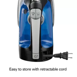 Remove wrinkles fast with the Hamilton Beach Retractable Cord Iron. The stainless steel soleplate glides easily over fabrics while the adjustable steam options allow you to choose exactly the right amount for each garment. The push-button retractable cord keeps closets and drawers tidy when the iron is tucked away. Adjustable Steam, Spray and Blast Iron dry or let the Steam, Spray and Blast options help.