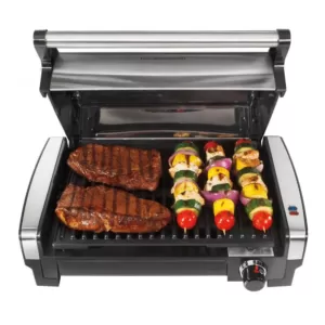 Enjoy outdoor grilled flavor anytime you want, regardless of the weather. The Searing Grill’s high-heat searing temperature locks in juices and flavor, giving your meat better taste, texture, and appearance. Unique hooded design helps keep in flavor to give your food that authentic outdoor grilled taste. There’s no messing with propane, charcoal, or lighter fluid, so cooking couldn’t be easier. Simply plug it in and turn the temperature dial all the way up to sear. When it reaches the high-heat searing temperature of 450 degrees, the green preheat light will glow. Now you’re ready to sear steaks, burgers, pork chops, or fish fillets to perfection. If you want to grill food that doesn’t need to sear first, the Searing Grill has an adjustable temperature dial for lower heat.