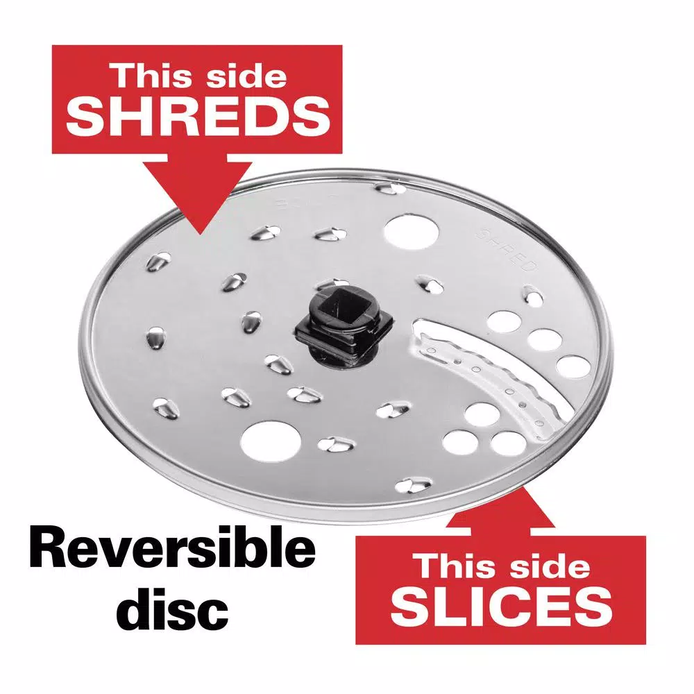 - Consists of 1 chopping blade and slicing/shredding disc.