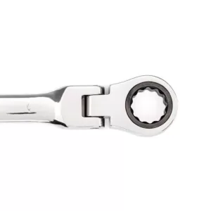 Husky’s flex-head ratcheting combination wrenches feature a 12-point, 72-tooth ratcheting box end that needs only 5 to engage fasteners and a head that pivots 180. Each wrench is manufactured from Chrome Alloy steel and heat treated for added strength and wear protection; providing durability for a lifetime of hard use. Their polished chrome finish resist rust and corrosion and easily wipes clean of oil and dirt. Both the open and box end features chamfered lead ins for quick and easy placement onto fasteners every time.