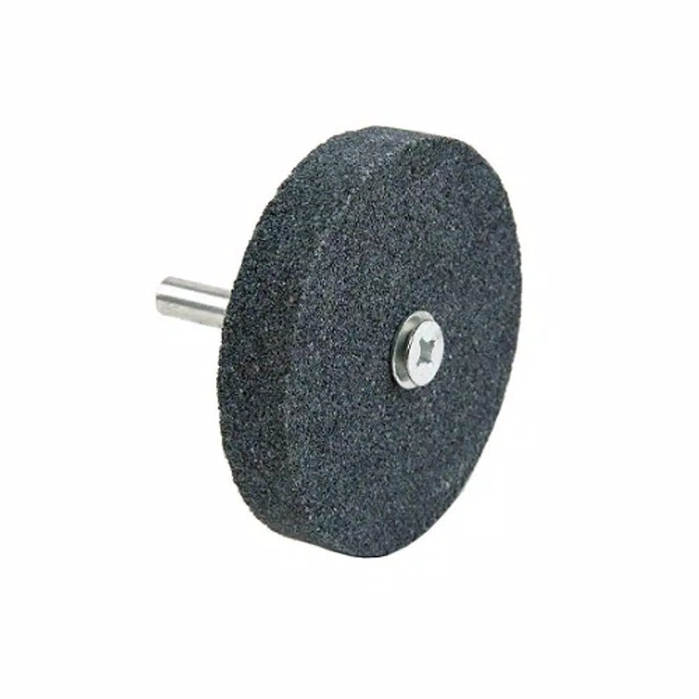 The Lincoln Electric 2-1/2 in. x 1/2 in. Black Aluminum Oxide Grinding Wheel has a 1/4 in. mandrel and is designed for use with electric drills. It is made from 60-grit vitrified aluminum oxide for durability.