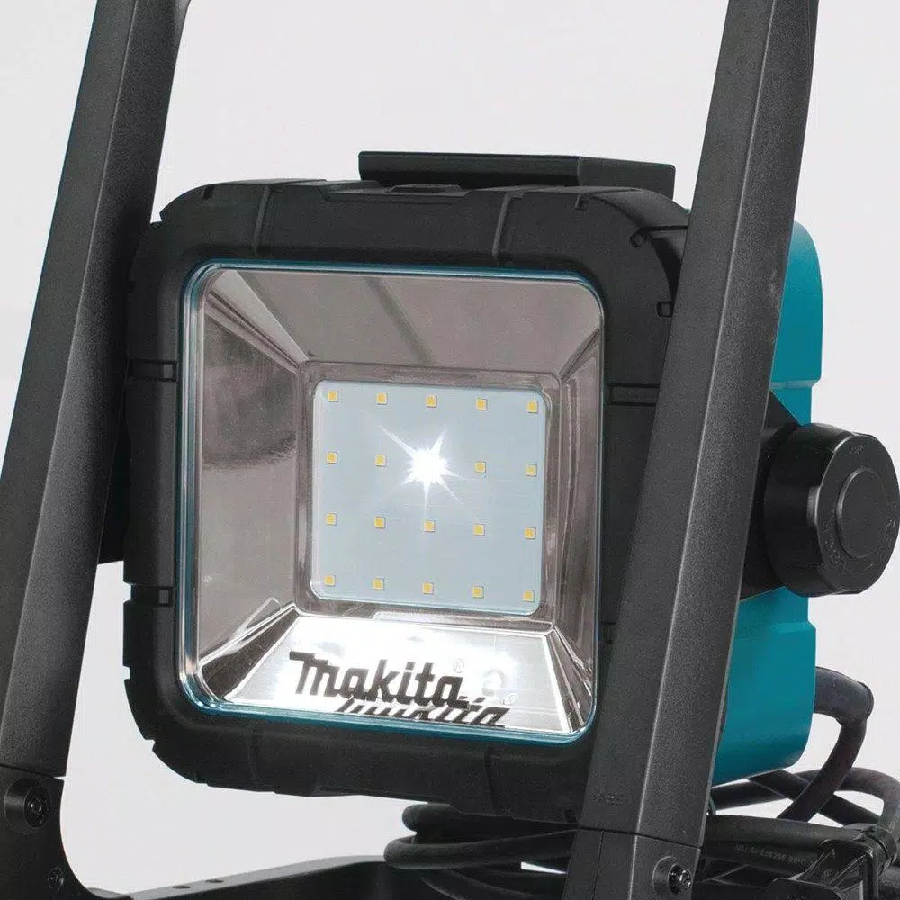 The 18-Volt LXT Lithium-Ion Cordless/Corded LED Flood Light (DML805) offers the convenience of choosing between cordless or corded operation and provides bright and even lighting for large work spaces without the high heat of halogens. At full brightness it provides 750 Lumens of light and 450 Lumens on low mode. The fast-charging 18-Volt LXT Lithium-Ion 4.0 Ah battery (sold separately) delivers 10.5-hours of continuous illumination on a single charge. It also features Extreme Protection Technology (XPT) for improved dust and water resistance. It is fully compatible with Makita 18-Volt Lithium-Ion batteries. It’s part of Makita’s expanding 18-Volt Lithium-Ion series, the world’s largest cordless tool line-up powered by an 18-Volt Lithium-Ion slide-style battery. Makita 18-Volt Lithium-Ion batteries have the fastest charge times in their categories, so they spend more time working and less time sitting on the charger.