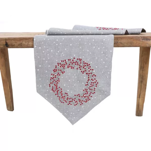 Christmas Holly Berry Wreath embroidered on natural fabric. This table linens collection creates a warm and festive setting for your holiday meals and gatherings. Make this appealing for any Christmas holiday setting. As your definitive home decor destination, we feels that every day should be lived fashionably. Our distinctive designs, rich details, and tempting accessories are sure to endlessly fulfill your homes finicky fashion sense. Whether you are keeping up with the ever changing colors of the holidays and seasons, looking for a stunning-Piece to tie your existing interior decor together while staying in tune with your individual style, or simply in need of an easy care focal point for an upcoming party or event, Xia Home Fashions and Manor Luxe has stylish creations that will complete your look and win complements at your next gathering.