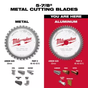 The Milwaukee 5-7/8 in. 50T Aluminum Cutting Metal Circular Saw Blades are specifically designed to exceed contractor’s expectations for blade life, cut quality and speed in the most demanding metal cutting applications – without a lubricant. The metal cutting circular saw blades have hand-tensioned hardened alloy steel bodies. This extends blade life and delivers the highest quality cuts available. The blades have Carbide-Tipped Teeth with Alternate Top Bevel grind to shear through metal delivering burr-free, cool-to-touch cuts.