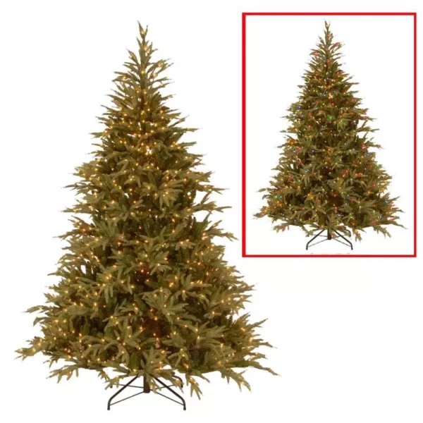 The Frasier Grande tree features FEEL-REAL branch tip technology, creating a tree with remarkable realism. This tree is pre-strung with 800 Dual Color lights that change from warm white to multicolor with the touch of a button. The bulbs are low-voltage LEDs that are energy-efficient, long lasting and cool to the touch. Included is a foot pedal switch to control 9 different light colors and actions. Hinged construction and metal tree stand add to ease of assembly.
