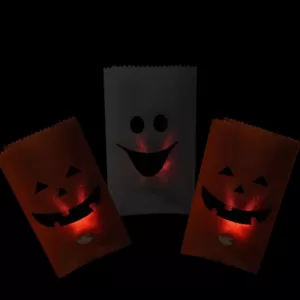 Festively line any driveway or walkway with these pumpkin and ghost luminaries. They are great for Halloween parties, cocktail parties and special events. Unlike normal luminaries that are made by using sand at the bottom of the bag with a candle in the middle of it, these are made to be safe and worry-free.