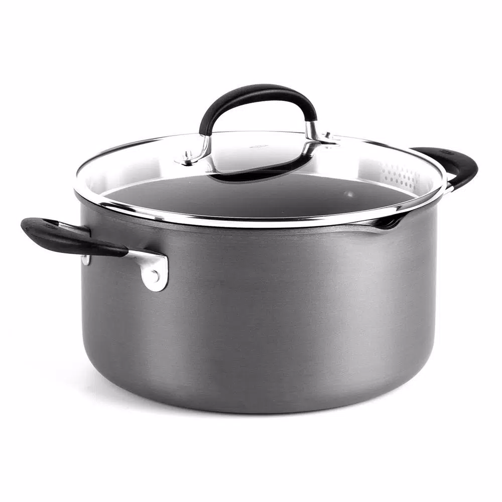 This pot from the OXO Good Grips Non-Stick collection is specially designed to make straining easy. A handy side spout and lid with variable sized holes helps you strain without worry. A 3-layer non-stick coating offers years of sticky-free performance.