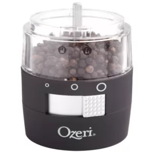 The most advanced Electric Pepper Grinder offered, the new Ozeri Savore features a new front-side adjustable ceramic grinding mechanism with 3 preset grind levels so that you never have to invert your grinder again. The Ozeri Savore Electric Grinder is the ultimate accompaniment to any dinning setting where a touch of fresh pepper (or salt) goes a long way. Designed to operate effortlessly, the new Savore combines a new front-side adjustable ceramic switch with a battery powered motor for push-button effortless dispensing of pepper (or salt). Marketed almost exclusively by word of mouth, the battery powered Savore consistently wins applause with its ability to grind peppercorns, salt and spices. The Savore Electric Grinder by Ozeri also boasts an ultra-soft non-slip grip with a finger-print resistant coating. The Savore requires no assembly, and runs on 6 AAA batteries (not included).
