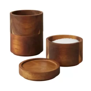 This Rachael Ray Tools and Gadgets Wooden 3-Tier Stacking Salt Box is perfect for grabbing salts or ground pepper in a pinch. Store table salt, gourmet salts, herbs and other favorite seasonings in this stylish stackable salt box for quick access while cooking. The salt box is distinctively crafted from beautiful acacia wood in a natural tone. The convenient stacking design with the top lid allows for easy storage of three different salts or seasonings, so cooks quickly can sprinkle truffle salt over scrambled eggs or toss kosher salt into a pot of boiling water for pasta. Handy and beautiful, the box looks great displayed on the table or countertop and when needed, easily hand washes followed by immediate drying for best care. Proper seasoning is vital to creating delicious dishes, and the Rachael Ray Tools and Gadgets Wooden 3-Tier Stacking Salt Box keeps those go-to salts and spices within easy reach.