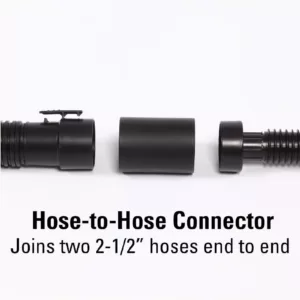- Hose-to-hose connector joins two 2-1/2 in. hoses end to end