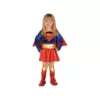 It’s a bird, it’s a plane. No. It’s Supergirl. The Toddler Supergirl costume includes a red and blue dress with the Supergirl logo on the front and an attached cape. The costume also features a gold belt and coordinating boot tops. If your girl loves the super powers and action packed adventures of superhero she’ll be delighted when you give her this costume. For Halloween and playtime she’ll enjoy using her superhero abilities to save the day. Not only will she become a superhero when she wears this costume, she’ll also look super cute.