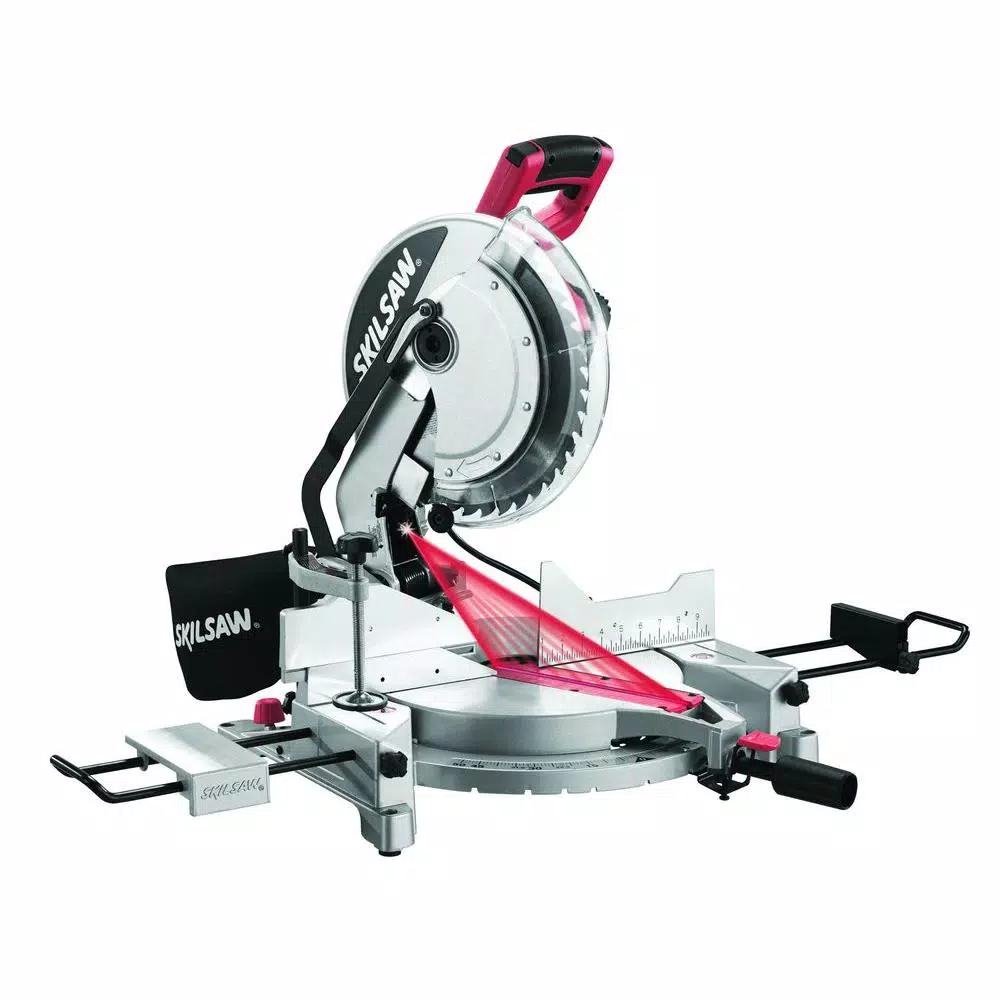 This 12 in. compound miter saw, model 3821, includes a laser, extension rails and a powerful motor that make it an ideal miter saw for any intermediate DIYer or woodworker. Transportable – integrated carrying handles for easy transport. Dust bag helps keep work area clean. Nine positive stops for setting common miter angles.