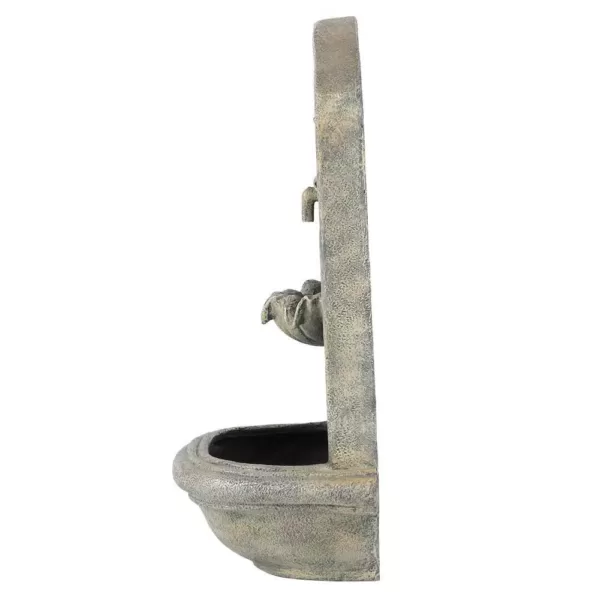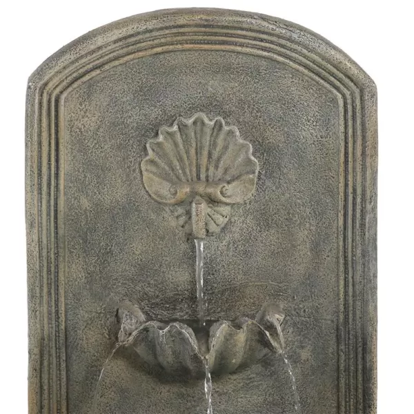 Add sea-themed charm to any patio or garden walls with this solar powered outdoor wall water fountain. Water flows from the faucet into the level below where it splits into 3 streams and flows into the basin below. The pump is plugged into a solar panel that runs the fountain via the sun. The fountain features a polystone and fiberglass construction, giving it a stone-like look. Polystone is made from polyurethane resin mixed with a powdered stone additive which provides the lightness and durability of resin mixed with the high-end look of stone. No more unsightly extension cords running across the yard and hogging the outdoor plugins.
