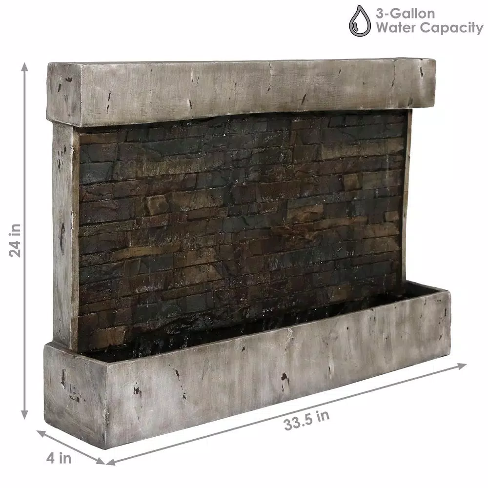 Enjoy the gentle, relaxing water sounds of this antique style waterfall fountain. Hang this wall fountain with ease on your patio, porch or make it the main decor accent in your backyard. Its earth tone color scheme is sure to blend with nearly any outdoor theme you have in your backyard space. With its ancient, old-fashioned aesthetic, this outdoor wall fountain is sure to bring a tranquil ambiance for you and your loved ones to enjoy.