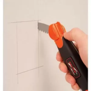 The Savage Folding Jab Saw/Utility Knife is one heavy-duty tool that is both a saw and an integrated utility knife, cleverly designed in a rugged metal case with a comfortable, cushioned handle. An industrial, screw-down bolt holds blades tight, but they can be changed easily and fast. The tool accepts any reciprocating saw blade, so you can use it for dozens of projects, from trimming trees to cutting metal conduit or plastic pipe. And it’s the perfect drywall saw. Saw blades can be locked in a straight or angled position for maximum flexibility. The onboard utility knife is top quality. It comes with a sturdy carrying case that holds the tool and extra blades, with a built-in belt clip, three saw blades and a utility blade.