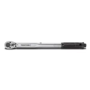 Calibrated to an accuracy of +/- 4%, the TEKTON 3/8 in. Drive Click Torque Wrench lets you work with confidence, eliminating guessing and the common tendency to overtighten fasteners. Correctly tightening fasteners to vehicle or equipment torque specifications ensures parts are properly secured without being damaged. Simple and easy to use, this wrench has a reversible ratcheting head that drives fasteners in both directions and measures torque in the clockwise direction. To measure torque, set the desired value on the handle scale (foot pounds or Newton meters) and begin tightening the fastener. When the preset torque value is reached, a reliable mechanical operation inside the handle produces a click you can hear and feel, alerting you to stop applying force. Built for consistent performance and years of dependable service, the mechanical design does not need batteries and the all-steel construction has no plastic parts to break or wear out. Important: This wrench is shipped pre-calibrated and ready to use. To help maintain calibration, store at its lowest setting of 10 ft./lb. (13.6 Nm) when not in use. Be sure to read and understand the operator’s manual, including all safety information, before first use.