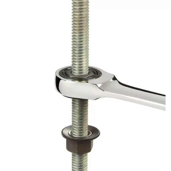 TEKTON Stubby Ratcheting Combination Wrenches offer the speed and ease of a ratcheting box end that stays continuously engaged with fasteners, eliminating the need to re-fit after each turn. Sized to go where others cannot, a short length makes it easy to operate in confined areas. A 6-point opening provides a sure, snug fit on hex-shaped fasteners so you can apply maximum torque without slipping off, saving aggravation and your knuckles. To prevent round-off, the box end opening contacts and applies force to the flat sides of fastener heads rather than the corners. Equipped with a 72-tooth ratchet gear that needs just 5° of swing arc to reach the next tooth position, it is fast and efficient when there is not much room to move. The open end is angled 15°, allowing the wrench to be flipped over with each rotation to engage the fastener twice as often when you are working in tight spaces.