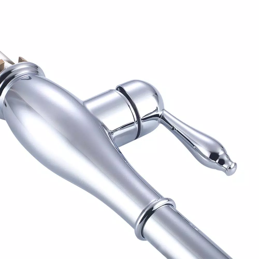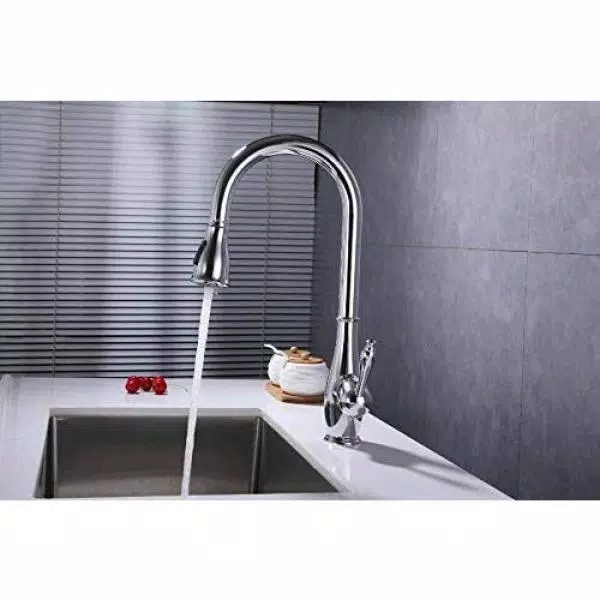 This Vanity Art Kitchen Faucet features an elegant design with a classic finish. The faucet comes with a pull-out spout to help extend and thoroughly clean your utensils and tools. Also, its robust brass waterway allows high-pressure water flow with zero internal damage and enhances product longevity.