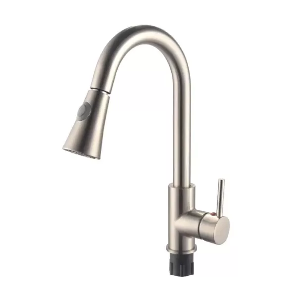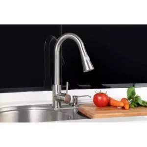 This Vanity Art Kitchen Faucet features an elegant design with a brushed nickel finish. The faucet comes with a pull-out spout to help extend and thoroughly clean your utensils and tools. Also, its robust brass waterway allows high-pressure water flow with zero internal damage and enhances product longevity.