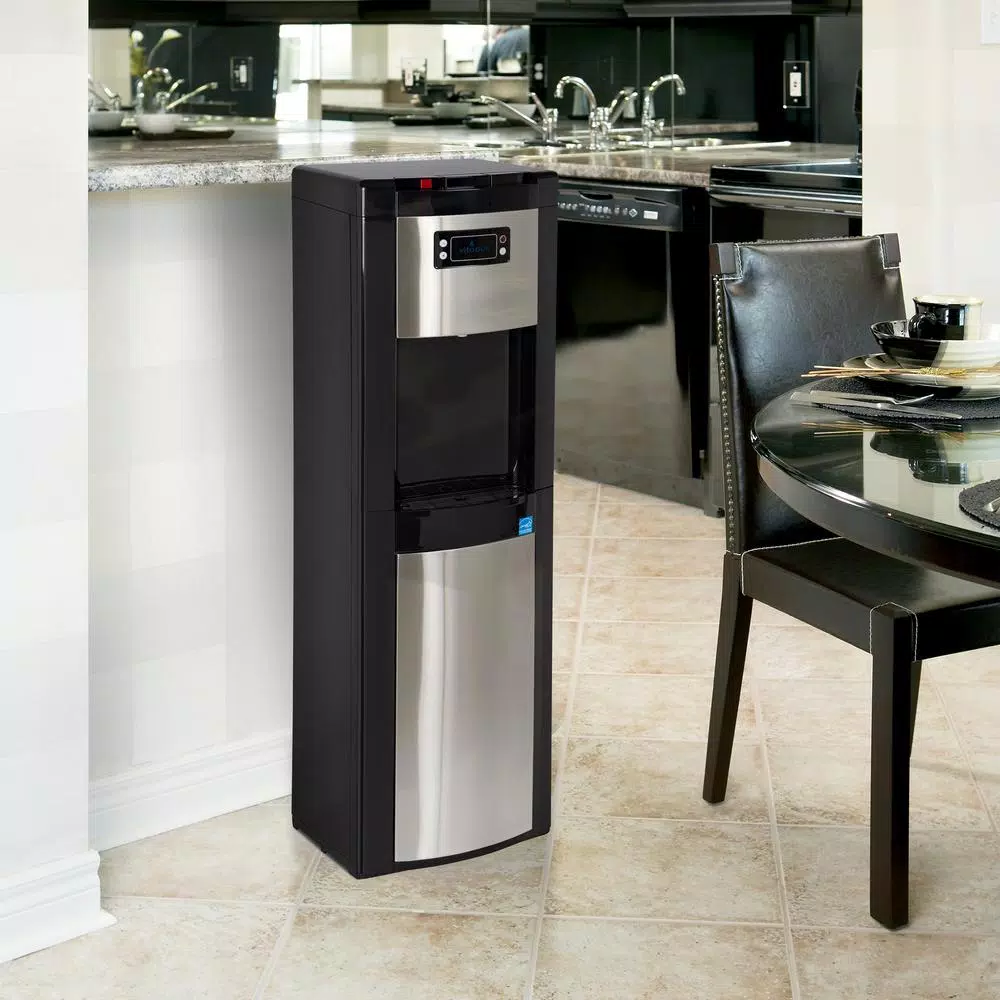This Vitapur Stainless Steel Bottom Load Water Dispenser features easy to use push button controls, dispenses hot, room and cold temperature water. Our Patented “Kettle Feature” hot water heating system delivers hot water in 3 minutes and is 70% more energy efficient than conventional (24/7) hot water heating systems. Ready-to dispense LED indicator lights identify when water has reached optimum temperature for your water cooler.
